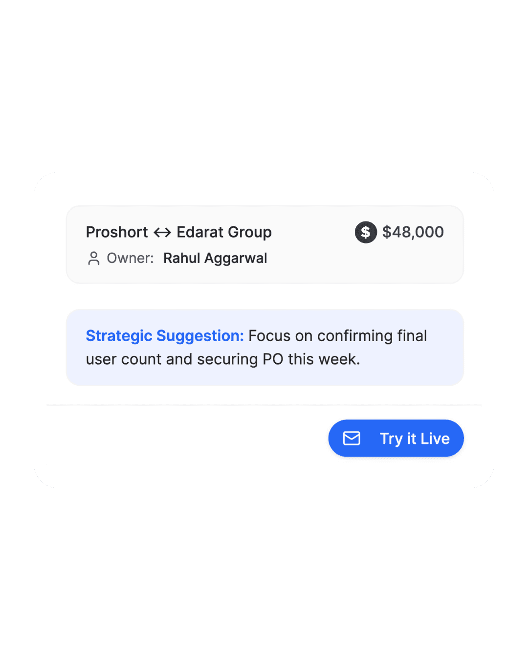 "Proshort has become an essential part of our sales workflow. The contextual insights it delivers are not only precise but also perfectly timed, giving us clarity on where to focus and how to act. It’s helped our team prioritize the right deals, save valuable time, and spend more of it in meaningful conversations that move the needle."