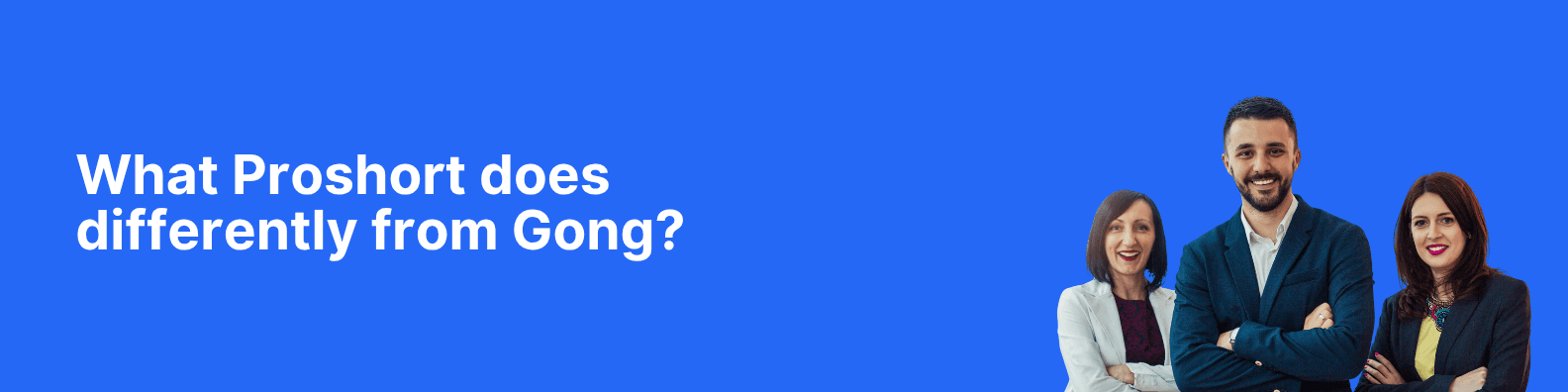 Proshort is a System of Action. While Gong observes, Proshort executes. We don’t just tell you that a deal is at risk; we provide the Agentic support to fix it. Proshort unifies your calls, your CRM, and your content into a tactical engine that works with the rep in real-time. We move the focus from "monitoring the past" to "winning the present."
